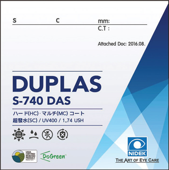 NIDEK DUPLAS는 1.74 양면비구면 렌즈다.
