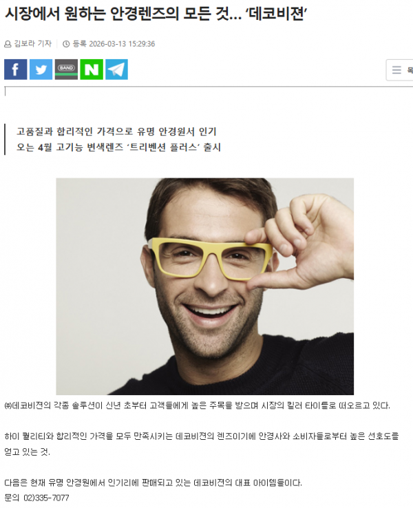 회사 측은 부가가치가 높은 양비 청광렌즈를 적극 홍보해 안경원의 수익 창출에 기여할 방침이다.